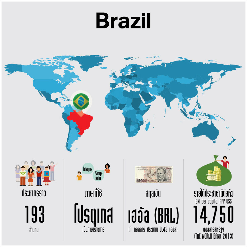 บราซิลมีเงินท้องถิ่นเรียกว่า "เงินเฮอัล (REAL)" (1 เฮอัล ประมาณ0.49 ดอลลาร์สหรัฐฯ หรือประมาณ14.56 บาท)