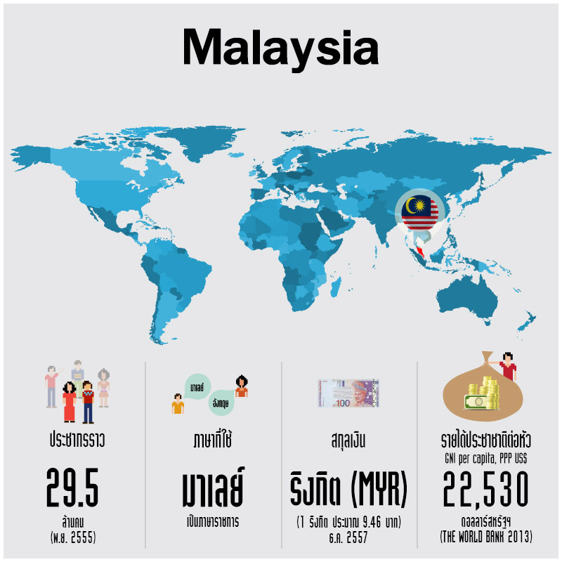 มาเลเซีย (Malaysia) ประเทศที่มีพรมแดนติดกับทางใต้ของประเทศไทย มีความสัมพันธ์กับไทยมาอย่างยาวนาน ทั้งด้านการค้า การลงทุนและการท่องเที่ยว นอกจากนี้ ทั้ง 2 ประเทศ ยังเป็นสมาชิกในสมาคมประชาชาติแห่งเอเชียตะวันออกเฉียงใต้ หรือ อาเซียน (ASEAN) มาตั้งแต่เริ่มก่อตั้งกลุ่มอีกด้วย ที่สำคัญ ในปี 2558 ประชาคมเศรษฐกิจอาเซียน (ASEAN Economic Community : AEC) ก็กำลังจะเริ่มต้นขึ้น ประเทศสมาชิกต้องเปิดเสรีทางการค้า สินค้า บริการ การลงทุน รวมถึงการเคลื่อนย้ายแรงงาน ซึ่งก่อนที่ AEC จะเริ่มต้นขึ้น นักลงทุนควรทำความเข้าใจกับประเทศมาเลเซีย เสียก่อน