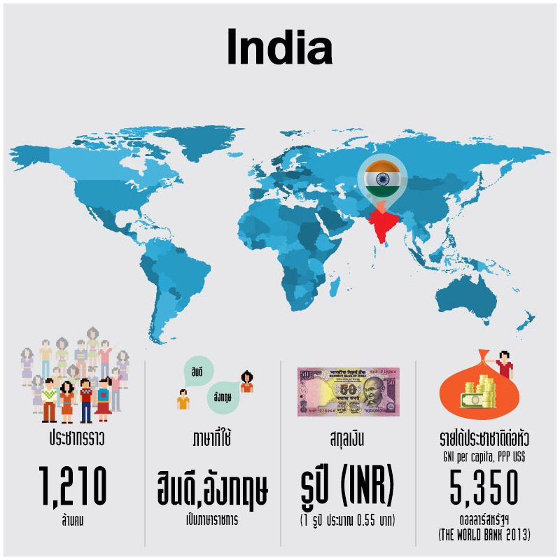 “อินเดีย” ตลาดที่มีประชากรมากเป็นอันดับ 2 ของโลก กำลังผงาดขึ้นเป็นตลาดเนื้อหอมในภูมิภาคเอเชีย และมีโอกาสที่น่าสนใจสำหรับผู้ประกอบการไทยอีกมากจากปัจจัยสนับสนุนหลายประการ อาทิ ยุทธศาสตร์ที่ตั้งซึ่งอยู่ใกล้กับไทย นโยบาย “Come, Make in India” เพื่อดึงดูดการลงทุนจากต่างชาติของรัฐบาลอินเดีย รวมถึงการพัฒนาระเบียงเศรษฐกิจตะวันตก-ตะวันออก
