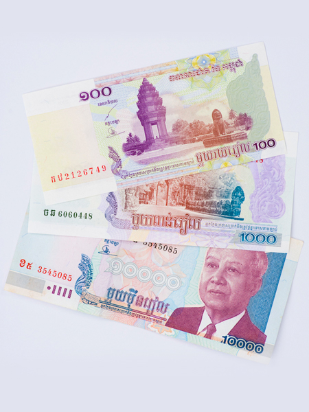 ระบบเงินตราที่ใช้ในกัมพูชาคือเงินสกุล "เรียล" มีรหัสสกุลเงิน คือ KHR ปัจจุบันมีอัตราแลกเปลี่ยนอยู่ที่ประมาณ 4,000 เรียลต่อดอลลาร์สหรัฐฯ (ข้อมูลล่าสุด ณ เดือนพฤษภาคม 2556)