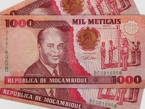 หน่วยเงินตราของโมซัมบิก คือ โมซัมบิกเมติกัล มีรหัสสกุลเงิน คือ MZN ปัจจุบันมีอัตราแลกเปลี่ยนอยู่ที่ 1.01 MZN ต่อ 1 บาท (ข้อมูลล่าสุด ณ วันที่ 3 พฤษภาคม 2556)
